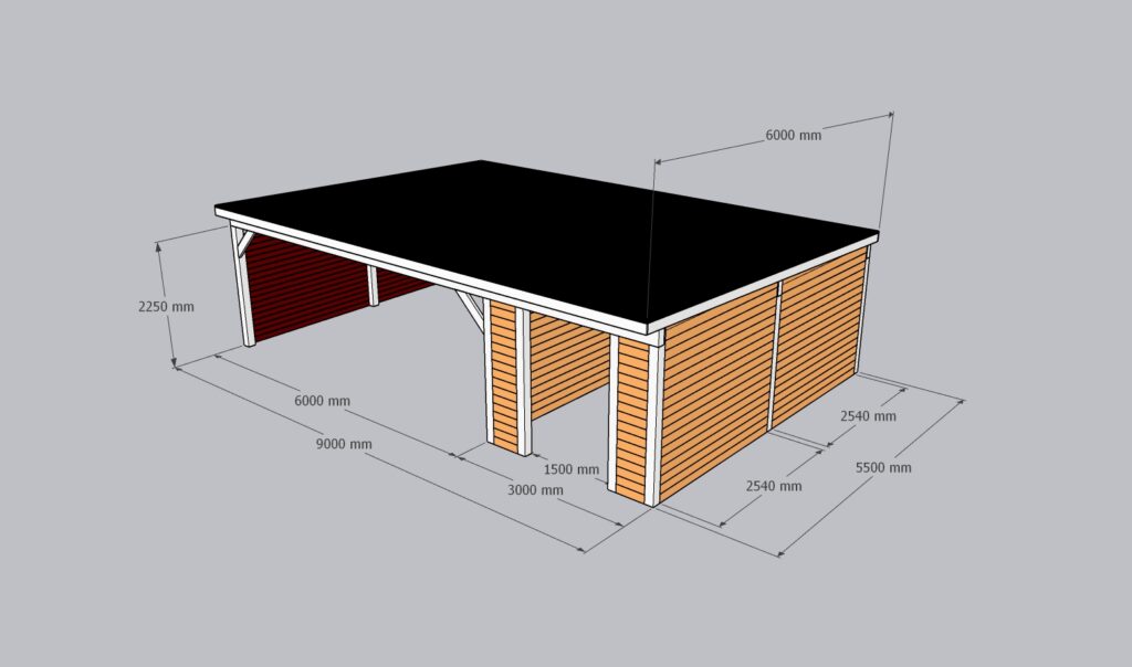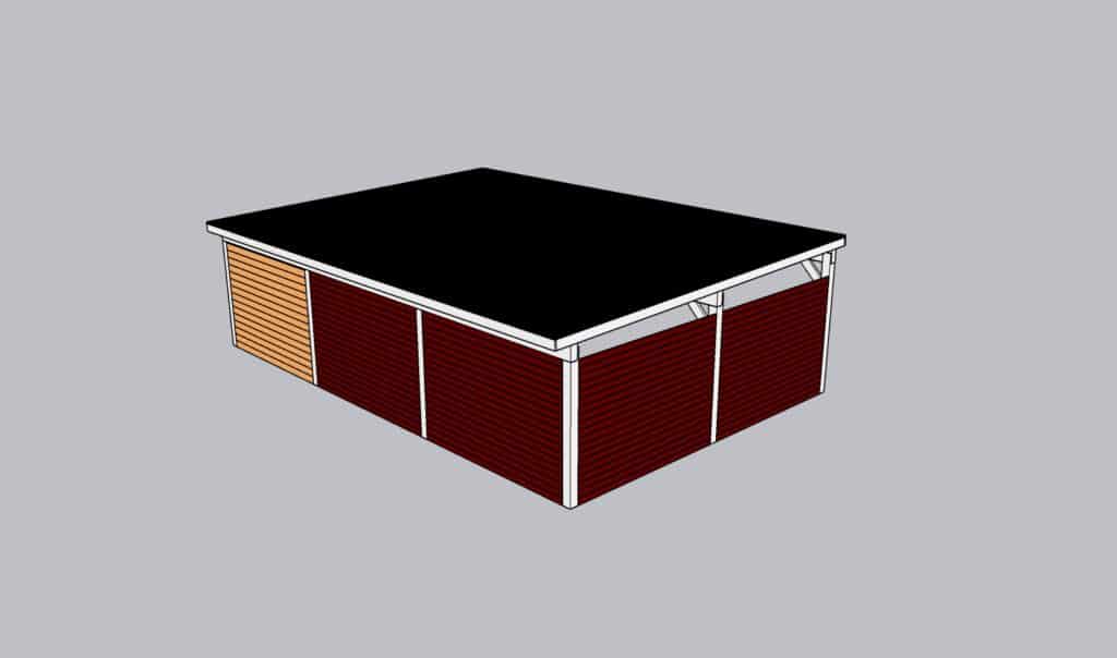 Auto varjualuse tugipostid ja kandvad talad on liimpuidust, kõik muu konstruktsioonimaterjal C24 tugevsorteer höövelmaterjalist. Katusekatteks sobiva tooniga T20 trapetsplekk. Auto varjualuse osa piiravad kahest küljest võreseinad. Kuuriosa seinad on ehitatud UYV-profiiliga voodrilaudadest.