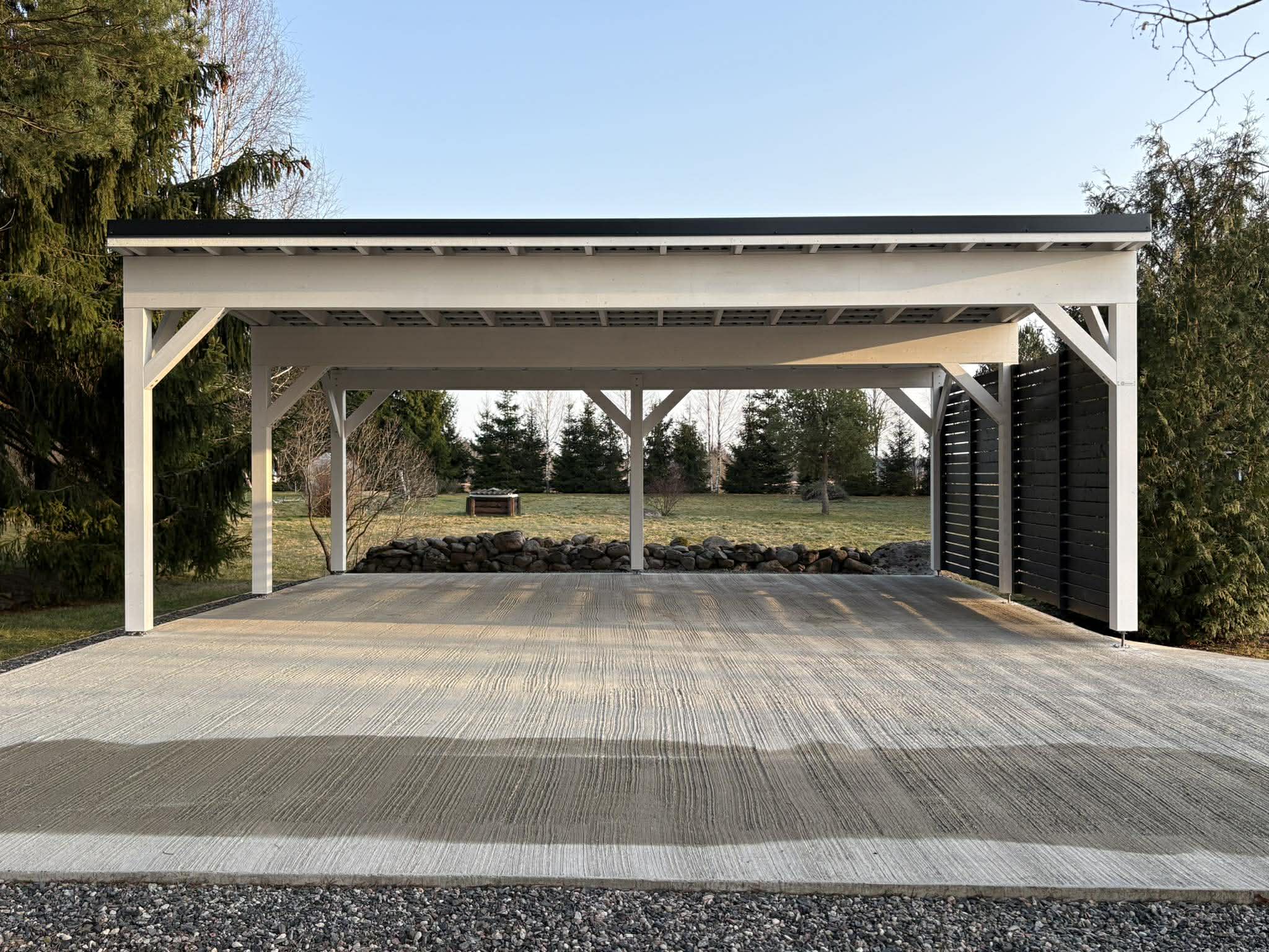 Auto varjualuse tugipostid ja kandvad talad on liimpuidust, muu konstruksioonimaterjal C24 tugevsorteer höövelmaterjalist.