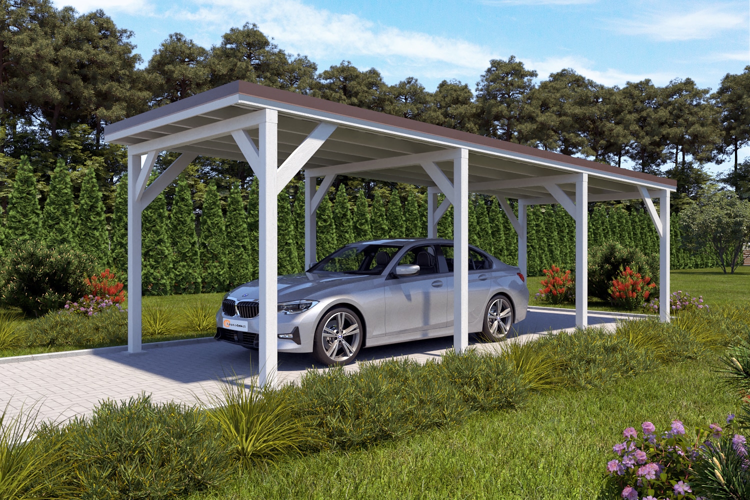 The support posts and load-bearing beams of the car shelter are made of glulam, all other construction material is grade C24 planing material.